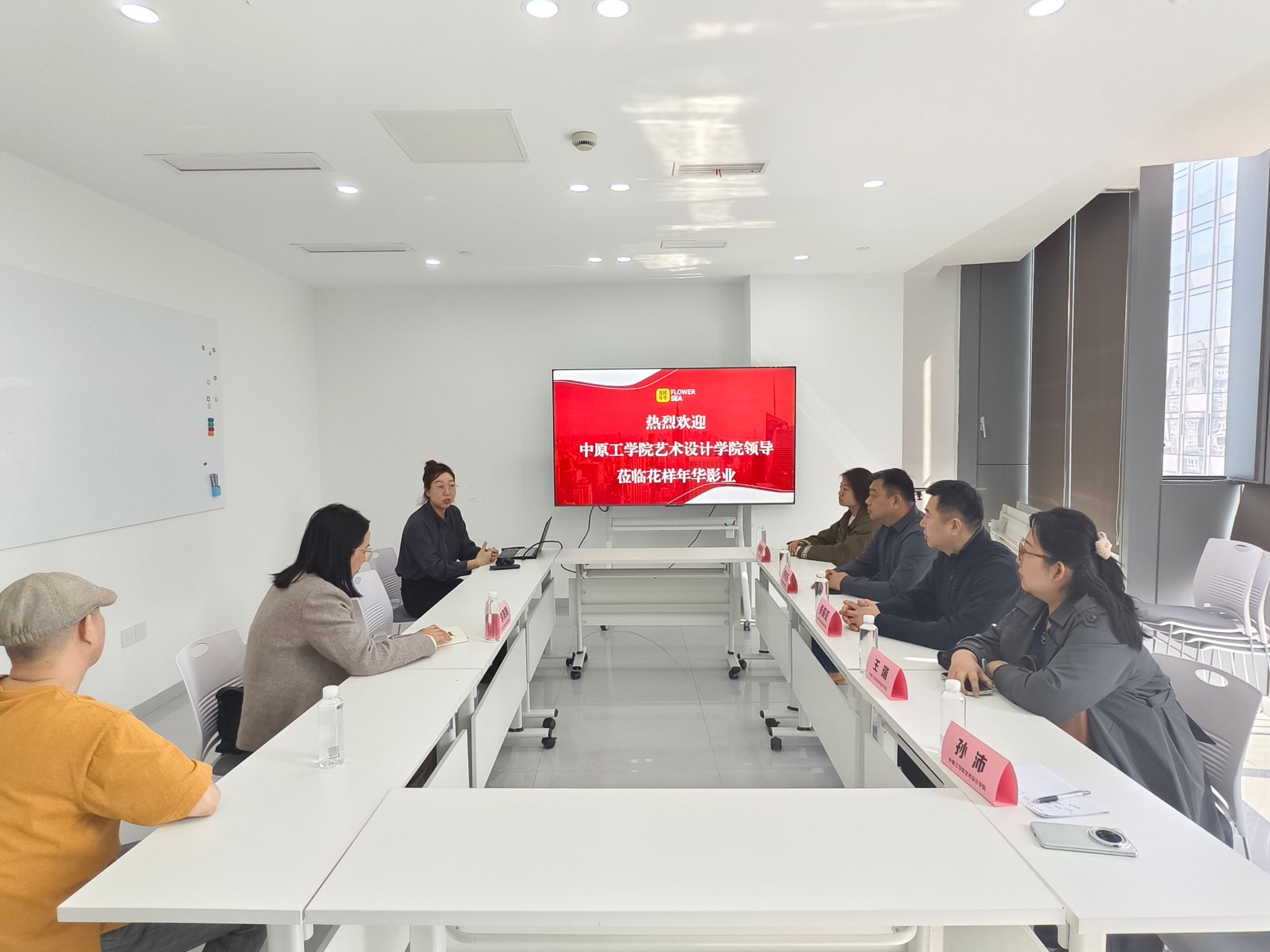 为进一步深化校企合作,拓宽学生实习与就业渠道,提升人才培养与市场需求的契合度。4月1日下午,艺术设计学院党委副书记李亮辉、摄影系主任张振亚、教师代表李旭东、陈永康、杨晓楠、视觉传达设计系教师代表王瑞、毕业班辅导员孙沛一行7人,前往郑州花样年华影业开展访企拓岗专项活动。