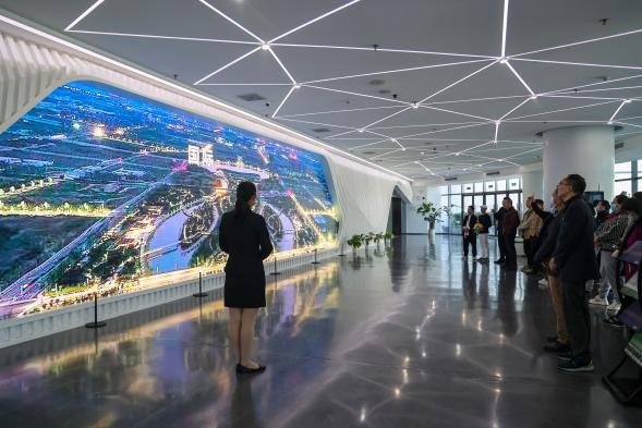 研学团队首先来到位于郑州市航空港经济综合实验区双鹤湖中央公园的城市会客厅。郑州航空港经济综合实验区是我国首个国家级航空港经济综合实验区,也是目前唯一一个由国务院批准设立的航空港经济区。研学团队一行参观了城市概况厅、总体规划厅、城市设计厅、专项规划厅等,详细了解航空港区在经济发展、城市规划、产业布局、对外开放等方面的情况,加深了对航空港区的总体认识。