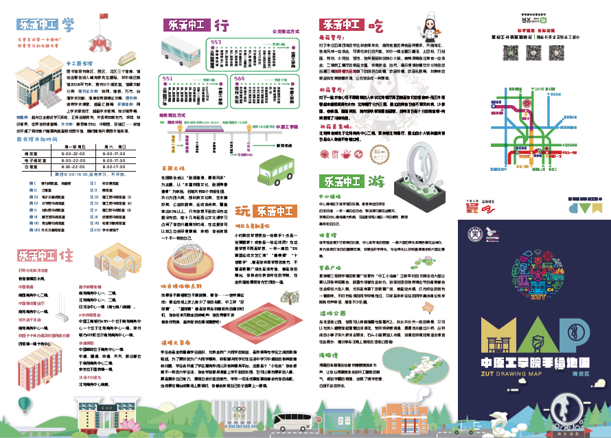 由凌士义院长总策划,刘方林、牛玉慧两位老师带领的葛宇航、张晨鹏、朱伟等团队成员,历时近半年绘制的中原工学院校园手绘地图,经整合集结于近日印制出版。由于采取数码手绘方式,地图色彩清新亮丽、艺术效果上佳,并且在地图的背面还从学、住、行、玩、吃、游五个方面归纳和总结了学校的各种生活方式,堪称中工校园生活的小小百科全书,因此地图一经面市就获得了各方的好评和广泛的追捧,这也是我院结合自身专业优势、服务校园文化建设的又一突出成果。