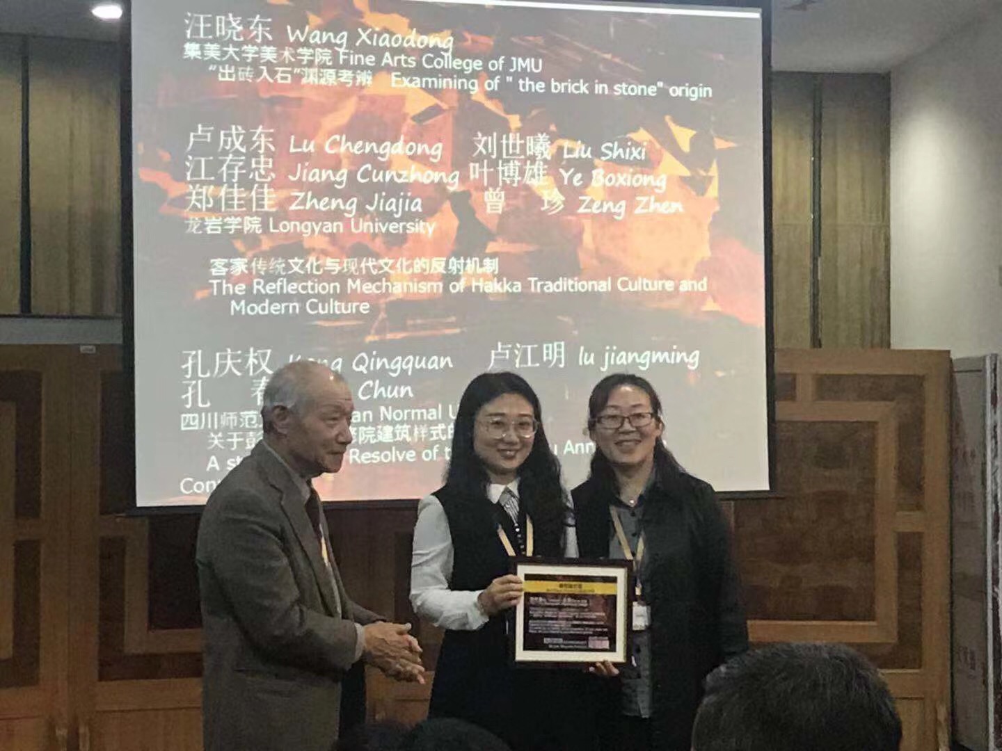 由我院胡艳珍老师指导、张景同学撰写完成的论文《河南地域文化资源的活化—以“许都曹魏文化”为例》获得大会优秀论文奖,亚洲设计文化学会总会长宫崎清教授亲自为其颁奖。