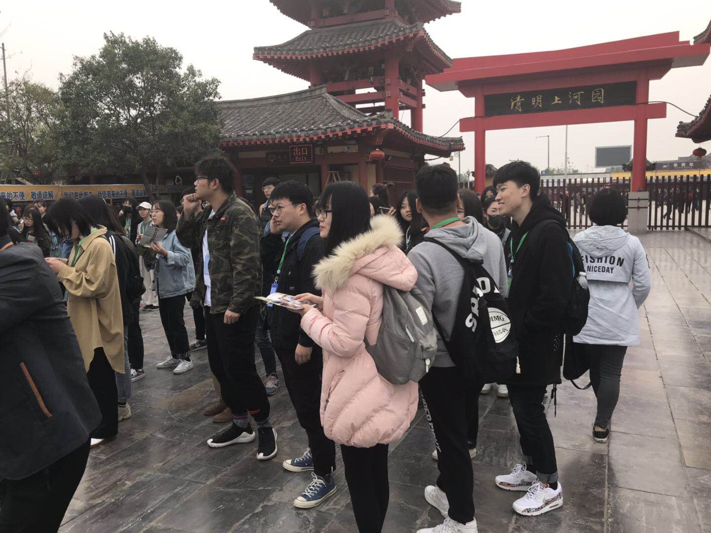 本次活动,艺术设计学院视觉传达设计系共组建两个设计创作小组,均由学生自愿报名组成。11日上午6:30,视觉传达设计系刘方林老师带领学生们出发前往景区。 在主办方的引领下,同学们开启了一天的清明上河园实地考察、项目开题和抽选导师工作。按分组抽签结果,“沈阳惟道品牌设计机构”创始人徐玮、“郑州见山品牌设计机构”创始人李孟军成为我院两个创作小组的实战导师,学生们将在两位导师的带领下展开设计。