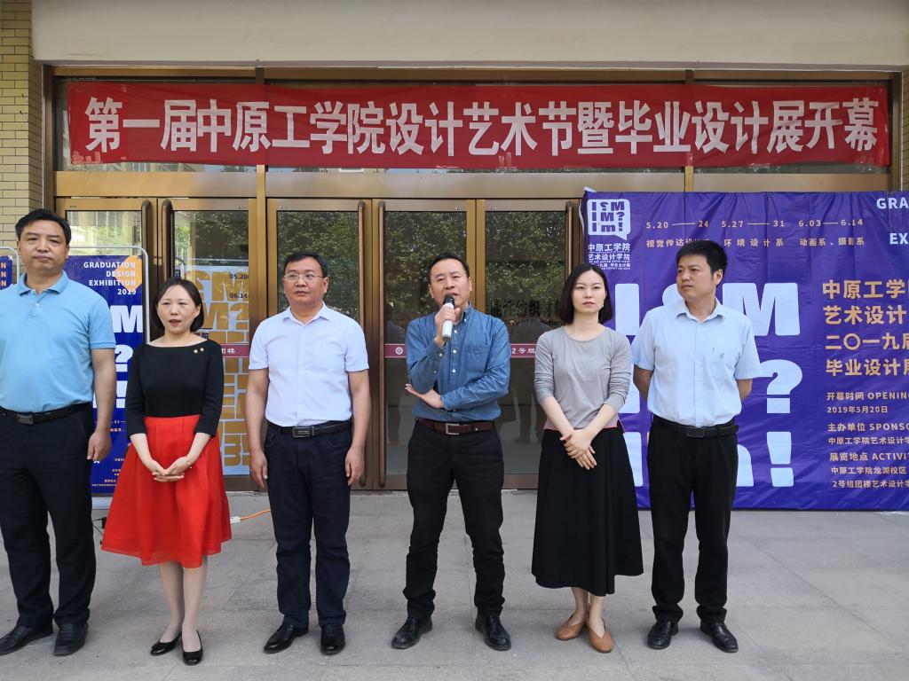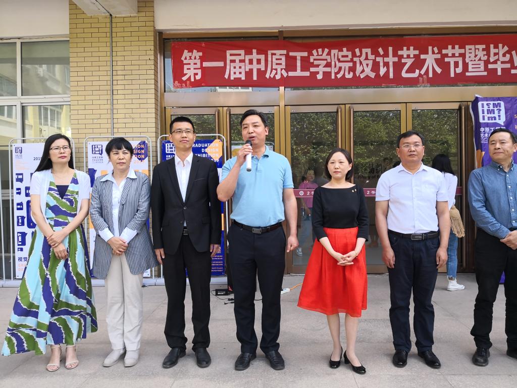 首届中原工学院艺术节已于5月20日上午十点在2号组团楼西门广场隆重开幕,今年的设计展览主题是“I am”。 我校副校长曹健、孙斌、教务处处长穆云超、校团委书记张志增等领导亲自到场祝贺。开幕式由艺术设计学院南政副院长主持,艺术设计学院党总支书记孟智慧、院长凌士义、副院长王丽丹、陈彩虹、党总支副书记马凯以及各专业系部主任、毕业指导教师和各级学生共200余人参加了开幕仪式。曹健和孙斌副校长还分别致辞,充分的肯定了师生们的毕业设计教学成果;凌士义院长也倾情寄语学生并宣布首届创意设计大赛颁奖,鼓励同学们以设计之名展现当代大学生创意创新的面貌,放飞梦想。