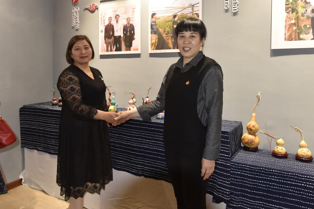 中原工学院驻村队员石磊介绍,通过对接帮扶,新集村村民在以葫芦文化、非遗文化、福禄寿文化、特色文化为底蕴,在小葫芦上通过烙画、雕刻、彩绘等,精心制作出的一个个栩栩如生的福禄寿、十二生肖等系列葫芦文化工艺品。新集村也感谢艺术设计学院党委积极组织师生共同参与新集村的产业扶贫。通过开设素描培训班,传授葫芦村民学习设计,发挥创意,制作葫芦工艺品,真正让新集村村民自己掌握致富的密码,站在了新的起点上。