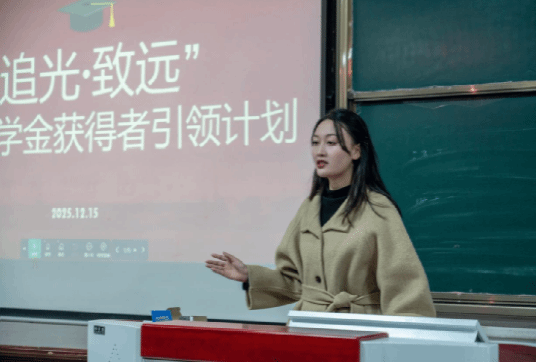 活动开展阶段,艺术设计学院于12月15日在4号教学楼101、241、216教室正式举办“追光·致远”国家奖学金获得者经验分享活动。活动邀请学院五位国奖获得者组成宣讲团,面向24、25级全体学生分享经验,由辅导员夏萌潞主持。