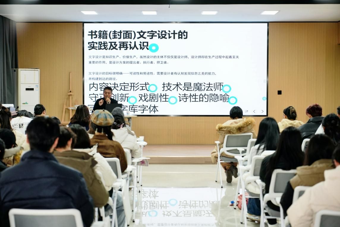 12月23日,应我校研究生处和艺术设计学院邀请,河南美术出版社副总编辑、设计总监、中国出版协会装帧艺术工作委员会副秘书长刘运来在龙湖校区艺术设计学院学术报告厅为我校师生开展“现代书籍设计中的文字设计与场景营造”专题讲座。艺术设计学院研究生导师、全体研究生、部分本科生参与学习交流。讲座由艺术设计学院副院长王丽丹主持。