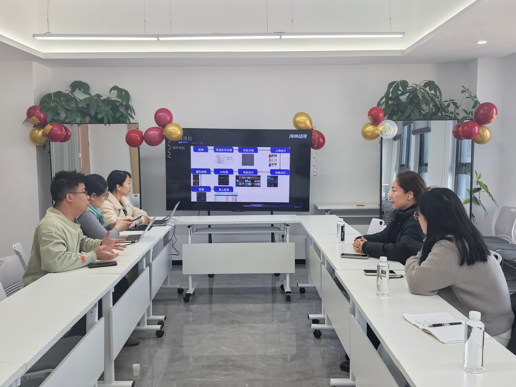 会后,在企业人员的陪同下,我院教师参观了AI短剧的制作流程及项目成果展示,深入了解了动漫短剧从生成到后期的完整工作链,并与在场实习学生进行了亲切交流。