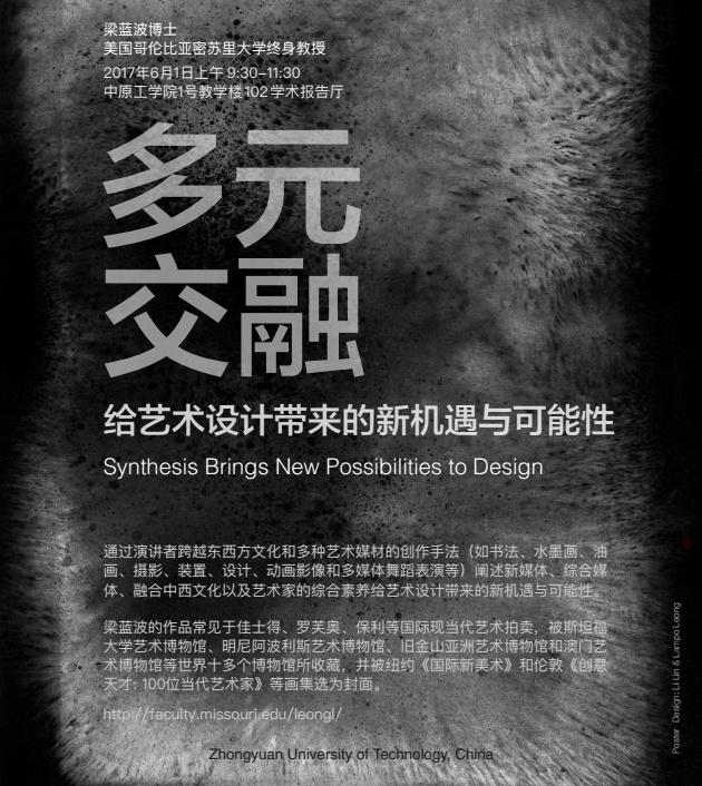 通过演讲者跨越东西方文化和多种艺术媒材的创作手法(如书法、水墨画、油画、摄影、装置、动画影像和多媒体舞蹈表演等)阐述新媒体、融合中西文化以及艺术家的综合素养给设计带来的机遇与可能性。