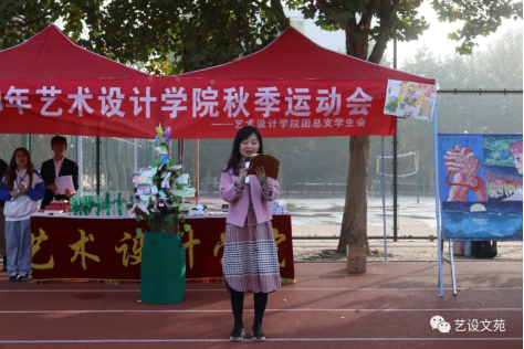 为了丰富我校学生的课余生活,提高学生的综合素质。2020年10月31日艺术设计学院秋季运动会在南苑操场隆重举行。开幕式上,17级学生会主席周思敏作了激励斗志的比赛动员,团总支书记毕岸洁老师和2020级辅导员王岩老师也进行了致辞,并宣布了本次运动会开幕。