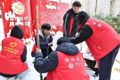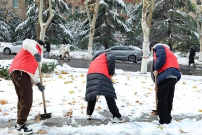 为尽快扫雪除冰、畅通道路、消除隐患,确保师生在校的安全和教育教学工作的正常进行。12月11日上午,艺术设计学院的红先锋志愿队队员们积极踊跃的加入到铲雪除冰队伍中,为师生们清扫积雪,保障校园道路可以正常通行。