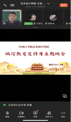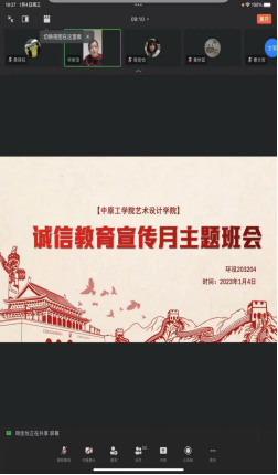 2022年12月19日至1月7日,为推动我院学生资助工作持续健康发展,引导大学生树立“诚信为本、立德修身”的理念,强化大学生的诚信意识,我院组织各年级班主任老师开展“诚信教育宣传月”主题教育班会。