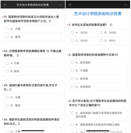 为进一步提高学生诚信意识和责任意识,增强资助育人成效,学院组织开展了诚信教育宣传知识大赛活动。2023年1月我院围绕“诚信”主题,同学们积极踊跃参与,真切生动地阐述了“信贷助学,诚信助人”需要“感恩先行”,呼吁同学们牢固树立诚信观念,拥有一颗感恩之心,强化了大学生的诚信意识。