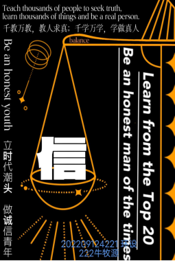 为大力宣传国家资助政策和育人成效,集中展现我院受助学生奋发自强、立志成才、诚实守信、感恩奉献的精神品格,我院组织开展“学习二十大 做新时代诚信人”主题海报征集活动,进一步宣传了国家助学贷款政策,普及了征信及金融知识,强化了贷款学生的诚信意识,提升了同学们防范网络新型金融诈骗自我保护能力,有助于营造诚实守信的校园文化氛围。