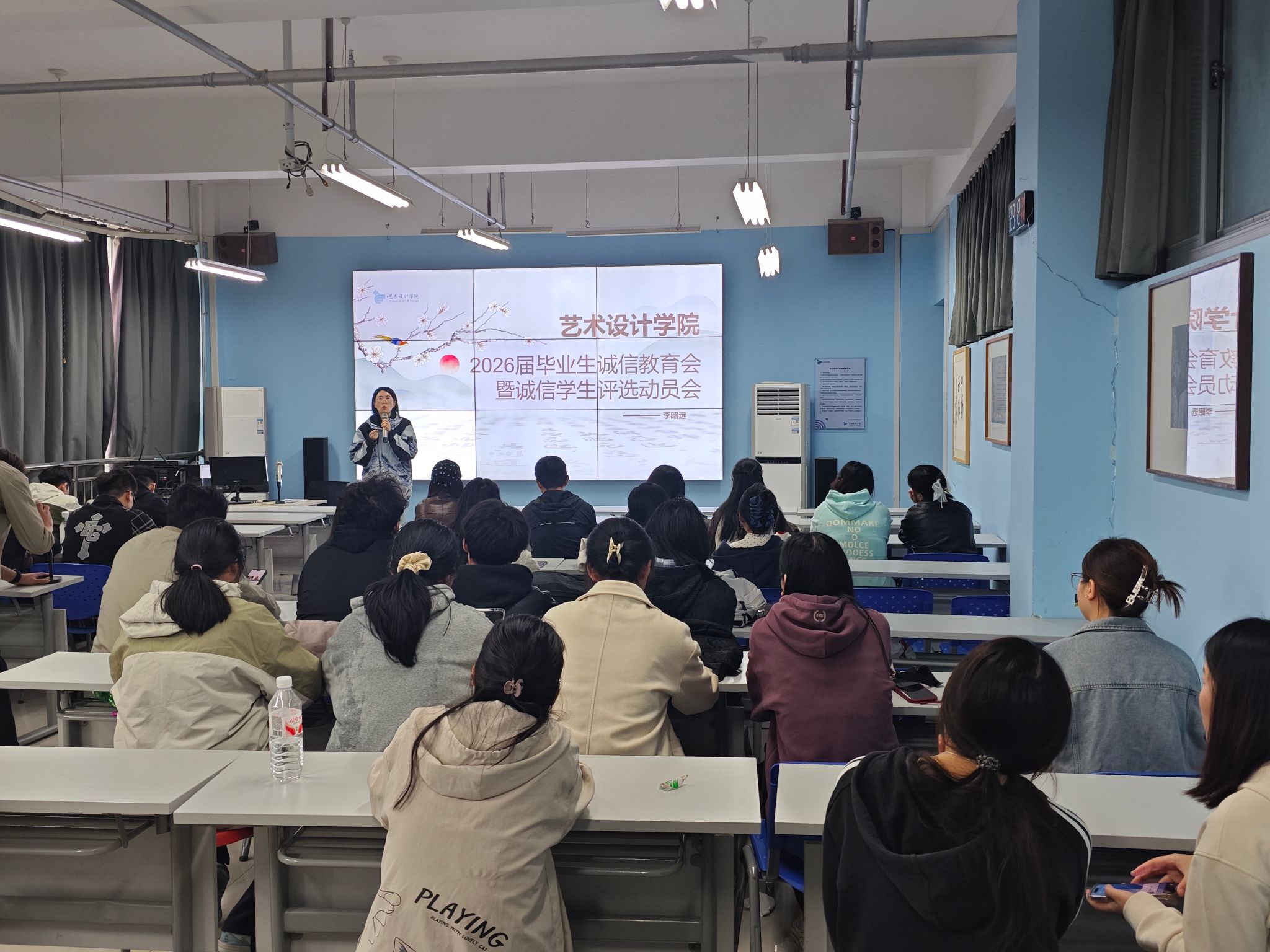 为持续深化资助育人工作,提升贷款毕业生的诚信意识与责任担当,确保国家助学贷款还款工作平稳有序推进,4月21日下午,艺术设计学院在3号组团楼D317召开2026届毕业生诚信还款教育大会。本次会议由我院资助工作负责老师李昭远作专题讲解,2026届全体贷款毕业生参加。