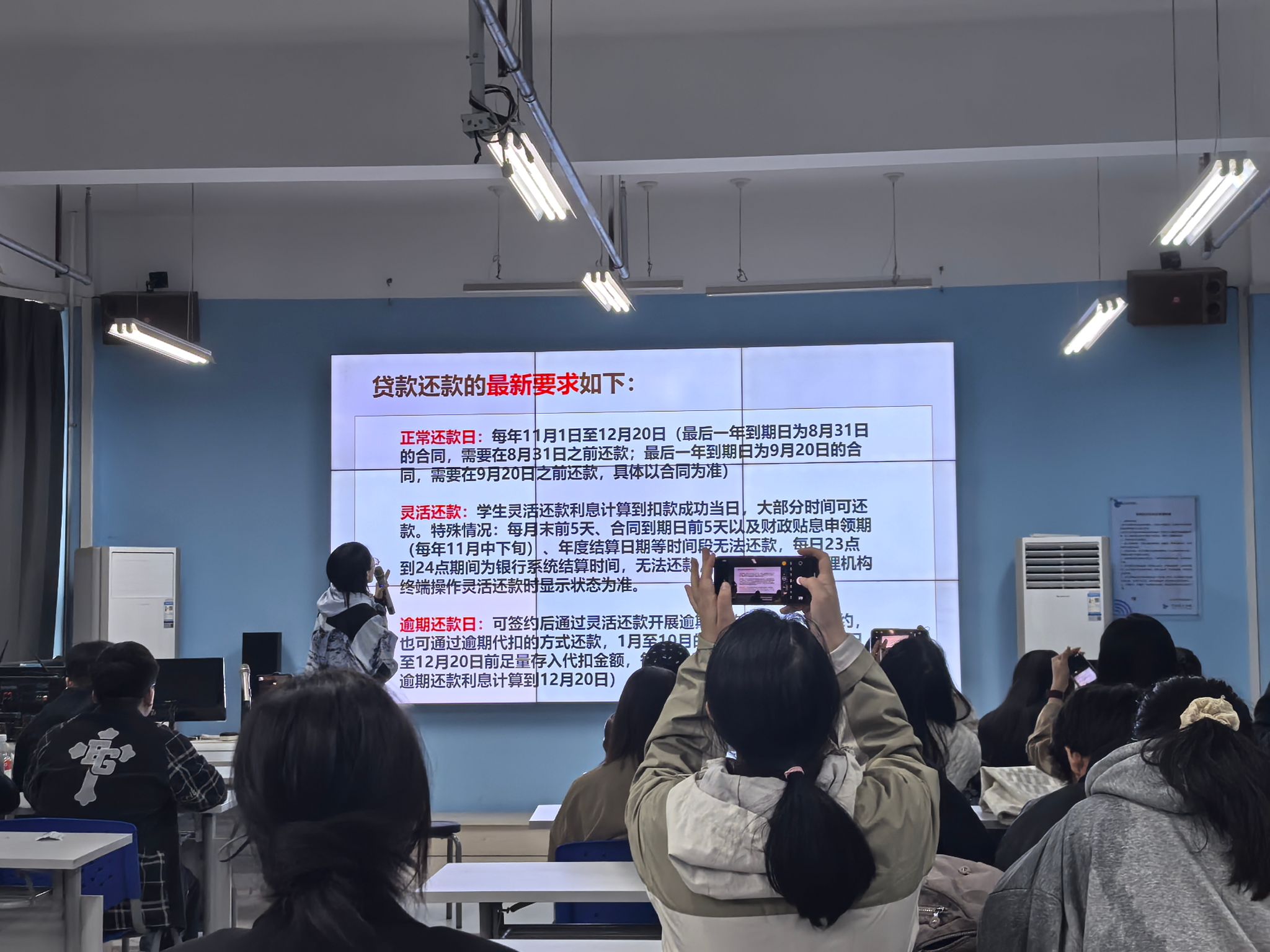 在政策解读与案例分析环节,李昭远老师通过流程演示与问题讲解相结合的方式,对助学贷款还款相关流程与政策要点进行了系统梳理,并针对同学们关心的问题进行了细致解答。 同时结合往届典型违约案例,深入剖析逾期还款对个人征信记录、就业发展及信贷消费等方面带来的不良影响,使同学们更加直观地认识到诚信还款的重要性与必要性,进一步强化了风险防范意识与责任意识。