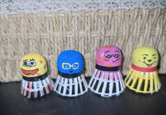 参赛选手以班级为单位或自由结组踊跃报名,赛场上精神抖擞、斗志昂扬,凭借扎实的技术功底与灵活的战术配合展开激烈角逐。在团队协作中,选手们默契配合、互相信任,将“每球必争、不言放弃”的体育精神诠释得淋漓尽致。经过多轮激烈比拼,摄影241 班田雅慧、242班邱维维与232班傅哲翔组成的 “阿对对”队 凭借稳定的发挥,成功摘得桂冠;视传243班王梓润、宋鑫颖、王贝宁组成的“海底小纵”队一路过关斩将,斩获亚军;视传242班房琮智、刘勖钊、王浦兆组成的“果宝特攻”队凭借顽强的拼搏精神拿下季军,他们的精彩表现赢得了全场观众的阵阵喝彩。啦啦队在场外绘制艺术羽毛球为选手们加油喝彩,将比赛体育精神和艺术特色相融合。